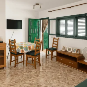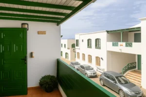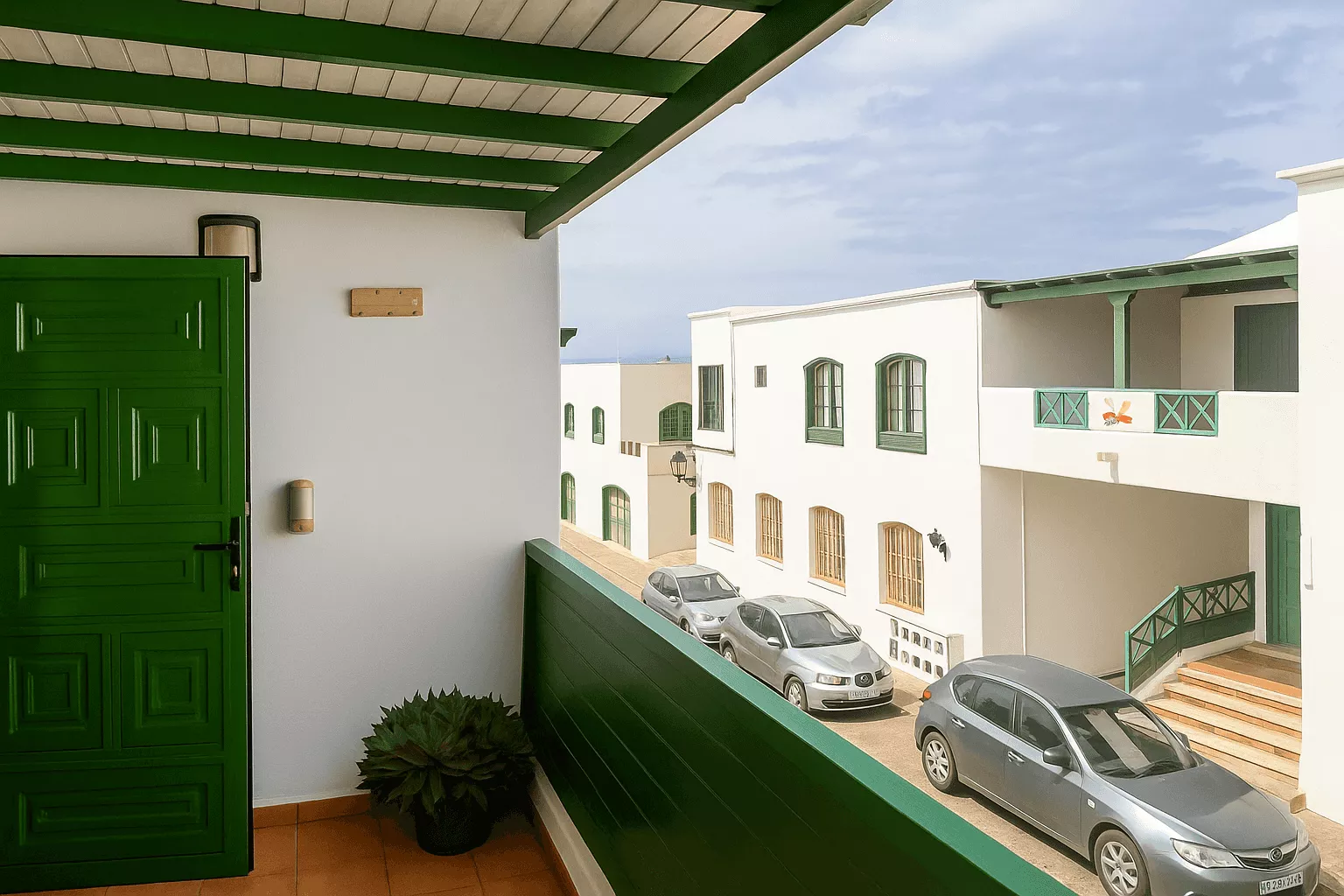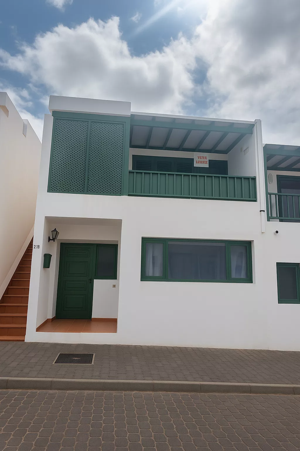 La vivienda forma parte de un conjunto residencial típico canario, con fachada blanca y carpintería verde, muy representativa del estilo local. Se encuentra en un entorno cuidado y con fácil aparcamiento en la vía pública.