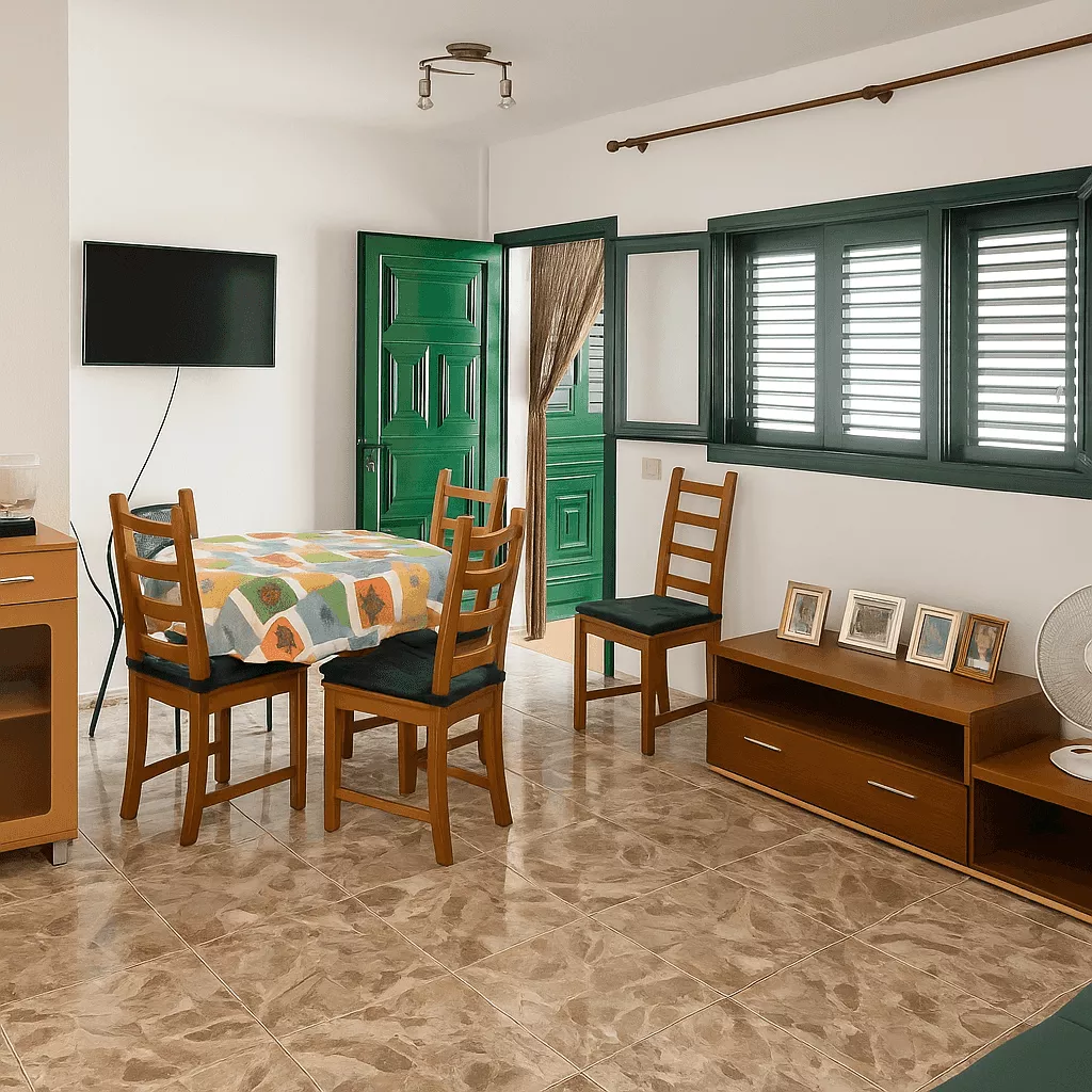 Amplio salón-comedor con aire acondicionado y ventana exterior de lamas, ideal para aprovechar la ventilación cruzada